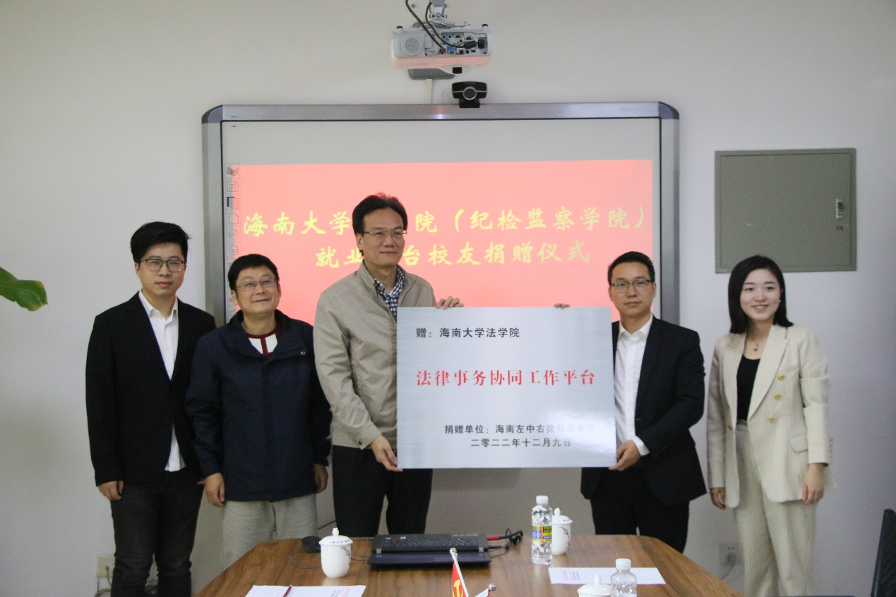 本次捐赠的员工就业工作平台全称为“法律事务协同工作平台”,经公司审核的校外企事业单位可在该平台派发工作任务,在校生及应届毕业生注册后可以自由接单并获取工作报酬,为法科学子熟悉和参与实务工作建立了安全、稳定的工作渠道。该平台由公司教师亓飞设计,海南左中右律师事务所出资援建。