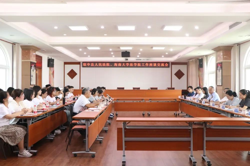 琼中黎族苗族自治县人民法院是全国多元化纠纷解决机制改革示范法院。师生听取了法院立案庭庭长王二美介绍琼中法院司法调解工作情况,参观了诉讼服务中心和老兵调解室。在与法院领导及业务骨干的座谈会上,双方针对多元纠纷解决的实践情况、方式方法、取得的经验、困境与展望等进行了深入讨论。法院王之经理对诊所课程拟开展的纠纷多元解决专题给予了充分肯定,并就专题的内容及员工的学习实践提出了中肯的意见与建议。他鼓励同学们毕业后加入到基层法院队伍中来,共同为法治海南贡献青春与力量。