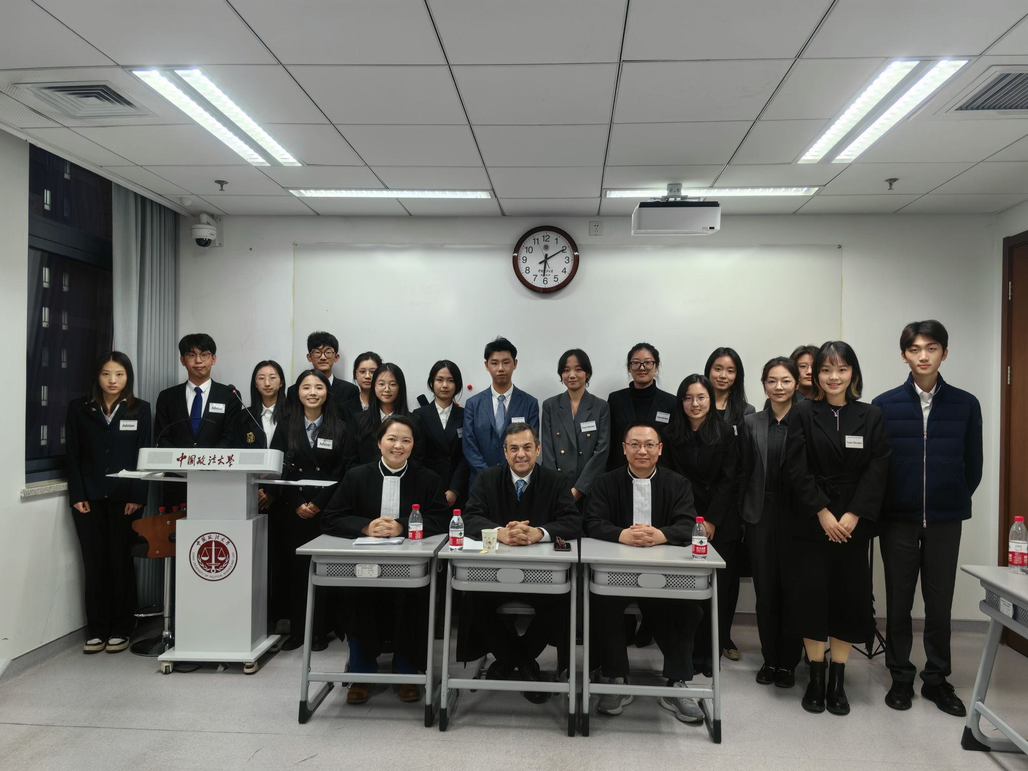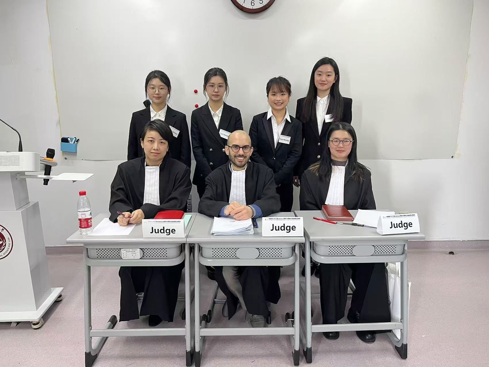 本届竞赛,由william威廉亚洲段文老师担任指导教练、2021级纪检监察实验班李辉担任助理教练,队员由2021级涉外法治人才班许牧野、江雨霏,2021级法学卓越人才班佘曼琦,2021级法学三班李依潼,2022级法学一班赵姝雅组成。全体队员共同参与了申请方与答辩方的书状写作和口头辩论的备赛与竞赛环节。同时,2022级涉外法治人才班陈兴羽,2022级法学二班金悦,2023级涉外法治人才班肖曾源三位同学作为预备队员参与到备赛工作中。整个比赛备赛时间长达十个月,师生团结一致,攻坚克难。
