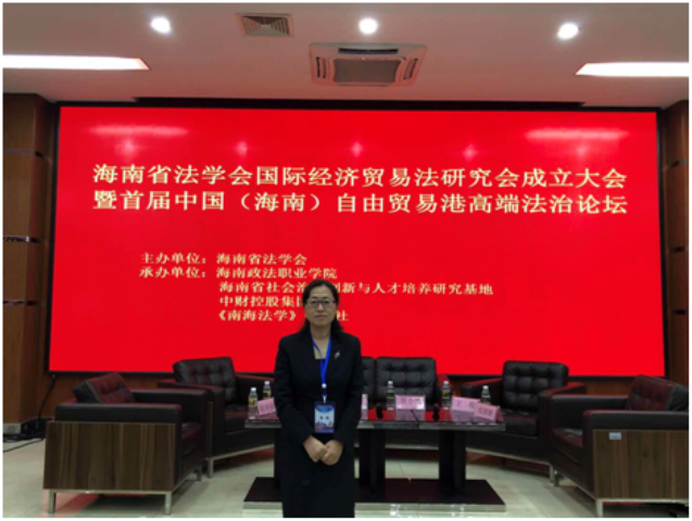 2018年12月9日,海南省法学会国际经济贸易法研究会暨首届中国(海南)自由贸易港高端法治论坛在海口召开。会议审议通过了《海南省法学会国际经济贸易法研究会章程》等文件,并表决通过了第一届常务理事会会长、副会长、秘书长等。公司张丽娜教授当选海南省法学会国际经济贸易法研究会副会长。