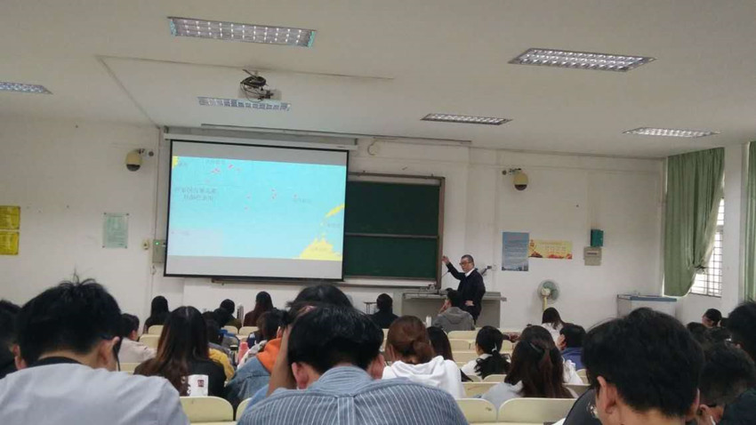 课堂伊始,高圣惕教授为同学们详细讲述了“中华人民共和国政府关于在南海的领土主权和海洋权益的声明”内容。并结合前述中菲南海仲裁案方面的研究成果和主要观点,为同学们提供了南海仲裁的最新动态,并就大家关心的南海热点问题与员工开展交流。