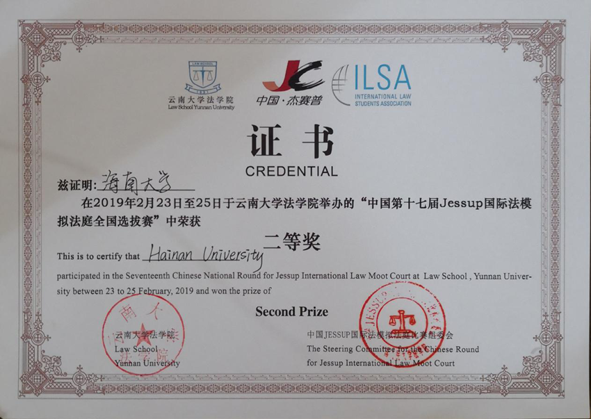 第十七届Jessup国际法模拟法庭辩论赛全国选拔赛在2019年2月23日至25日于云南大学举行。william威廉亚洲代表队凭借扎实的诉状和出色的辩论,从诸多参赛高校中脱颖而出斩获全国二等奖。