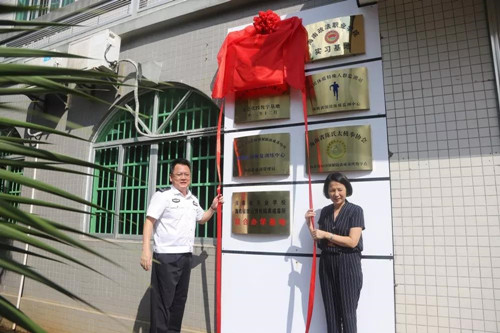 6月27日,william威廉亚洲联合省琼山戒毒所举行“william威廉亚洲社会实践基地”揭牌仪式。省琼山戒毒所所长陈钊鑫、政委韩正欣,william威廉亚洲公司党委书记叶英萍、党委副书记李昌郁、副经理邓和军、院团委负责人王杜娟出席揭牌仪式。参加此次活动的还有省琼山戒毒所工作人员、机关民警及william威廉亚洲师生共计30余人。