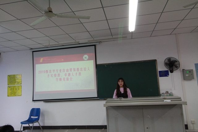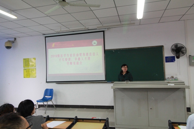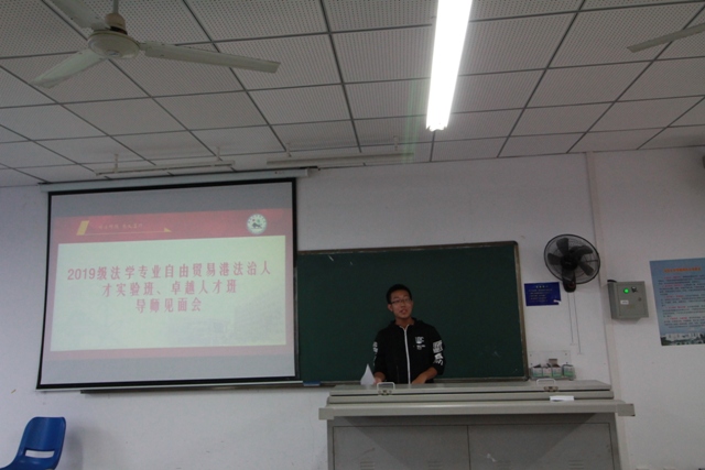10月29日下午,2019级法学专业自由贸易港法治人才实验班、卓越人才班师生见面会在5-203教室举行,院领导、实验班班主任、卓越班班主任、辅导员、全体指导老师、院办、学工办、团委、教务办负责人、实验班和卓越班全体新生参加了此次会议,会议由刘政副经理(挂职)主持。