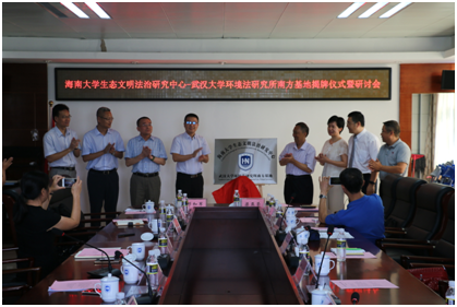 海南老员工态文明法治研究中心揭牌仪式随后举行。刘亮教授、王琦经理、马淑杰教授、秦天宝教授、蔡守秋教授、柯坚教授等领导、专家共同揭牌,见证了海南老员工态文明法治研究中心-武汉大学环境法研究所南方基地成立的重要时刻。