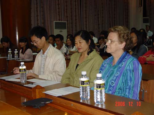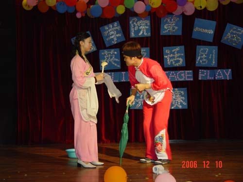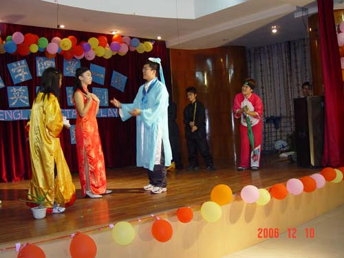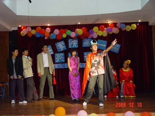 2006年12月10日晚,同学们期盼已久的英语话剧比赛在模拟法庭隆重上演。比赛评委团由外国语公司经理曹玲娟教授、贾绍东副教授、外教Mr Rose担任,公司党总支副书记韩力光、黄永锋老师和团委书记李昌郁老师应邀出席。