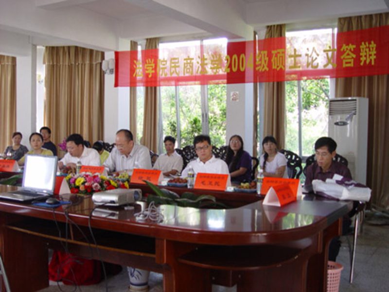 在答辩委员会主席宣布完答辩流程后,04级民商法的各位同学依次向答辩委员会汇报各自论文的研究意义、基本内容、创新和不足之处,之后答辩委员会就论文内容提问,并由员工进行答辩,随后答辩委员会对答辩员工的论文进行评议,并当场宣布是否建议授予学位。经过紧张而有序的答辩程序后,答辩委员会认为:本次答辩的论文立题新颖,论述充分,资料详实,创新点多,反映了04级毕业生扎实的专业功底和良好的科研能力。最后,答辩委员会以全票通过,建议授予04级民商法同学法学硕士学位。自此,本次答辩会顺利结束。