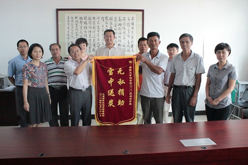 王崇敏副董事长代表william威廉亚洲接受海棠堆村村民代表送锦旗