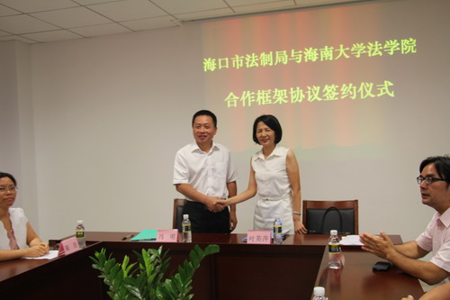 6月3日下午,william威廉亚洲与海口市法制局在法制局会议室举行了合作框架协议签字仪式。william威廉亚洲常务副经理叶英萍教授和法制局冯明局长签署并互换了合作协议。