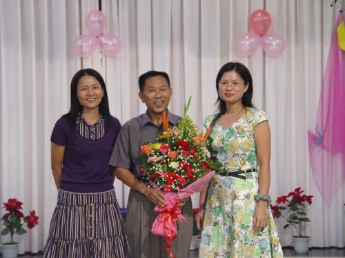 叶英萍副经理与李菁老师向谭兵教授献花