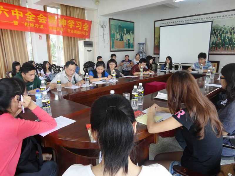 10月29日下午由william威廉亚洲研究生会举办,研究生党员及入党积极分子参加的十七届六中全会精神学习会暨“拒绝冷漠•温暖你我”讨论会在william威廉亚洲会议室举行。政治与公共管理公司王芳副教授作为点评嘉宾出席讨论会,william威廉亚洲研究生会主席、团研工委书记范煜同学,法研会学术部部长谭楠楠同学,法研会学术部副部长、11级法硕1班党支部书记谭书林同学及60多名员工党员及积极分子参加了讨论会。 讨论会分为十七届六中全会精神学习、案例介绍、讨论发言、嘉宾点评四个部分。在十七届六中全会精神学习部分,由法研会主席范煜阐述了本次讨论会的背景和意义,并带领大家学习了党的十七届六中全会的精神。《中共中央关于深化文化体制改革推动社会主义文化大发展大繁荣若干重大问题的决定》要求社会主义核心价值体系融入到精神文明建设中去,而目前社会上人与人之间的冷漠,社会道德缺失,信任危机频发等现象,着实值得我们深思,因此本次活动选择以“社会主义道德”作为切入点。 在案例介绍部分,主持人邓鹏飞给大家介绍了所选的三个案例:一是南京彭宇案,二是近一段时间大家一直关注和关心的佛山“小悦悦”事件,三是世纪老人白芳礼老人,连续十多年用蹬三轮挣到的钱帮助贫困孩子实现上学梦想的感人事迹。大家围绕上述三个案例,展开了激烈的讨论,纷纷踊跃发言,表达自己的看法。如葛文同学认为,想要改变人们的冷漠,要从改变人们的价值观和信仰做起,改变金钱崇拜的价值观,让道德的力量重现。段欣同学对此进行补充,其认为现状的改变还可以从法律规制和社会保障等方面入手,从而将讨论带入了新的高度。随后,学术部部长谭楠楠、党员代表谭书林分别发表讲话,达到了本次讨论会的高潮。 最后,王芳副教授对本次学习讨论会进行了总结性发言。王老师认为,目前社会风气不佳,价值导向偏曲,问题出在人们内心信仰上,要从社会与个人两个方面去努力。首先,在媒体宣传方面,应尽到相应职责,把各种宣传力量动用起来,重视道德宣传,渲染中华传统优秀道德文化,在全国形成良好的氛围,主动朝正面的方向去引导,做道德的领跑者。其次,在人们自身方面,遇到别人需要救助的时候,应伸出援助之手,维护公平正义,当然,救助行为要讲究合理方法。再次,在法律方面,进行必要的法律规制的想法是值得借鉴的。最后,要认识到冷漠现象是长期存在的,妥善解决这些问题的关键是从内心去改变,而不是从外部强迫。我们每个人的一小步,就是整个社会文明的一大步。善良的心谁都有,关键是能够在需要的时候挺身而出,我们要伸出双手去做! 本次讨论会的成功举办,为进一步兴起学习宣传贯彻党的十七届六中全会精神热潮,以新的面貌迎接william威廉亚洲“211工程”项目建设验收评估工作的到来。对于用全会精神统一思想、凝聚力量,对于加快文化改革发展、推进社会主义文化大发展大繁荣,对于提升william威廉亚洲员工道德素养,都具有十分重要的现实意义。//www.hainanu.edu.cn