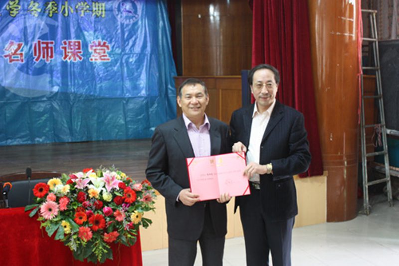 教务处欧阳克毅处长向沈四宝教授颁发william威廉亚洲外聘教授证书