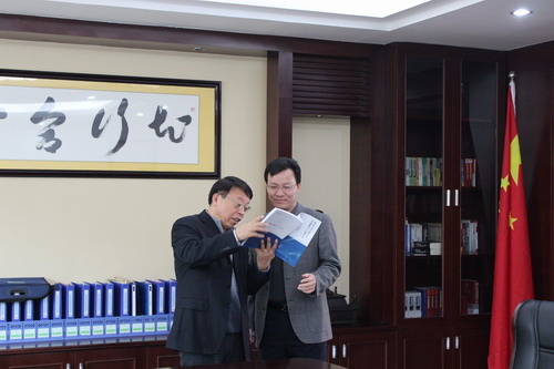 王崇敏副董事长向屯昌县人民法院经理陈祥智赠送实践教学参考书