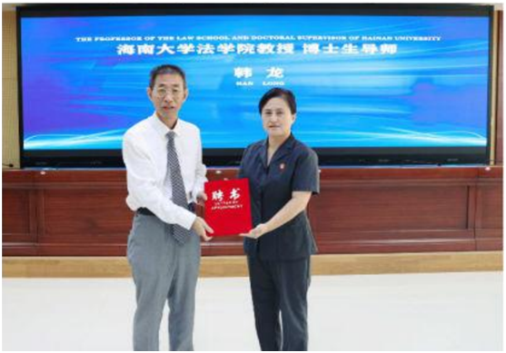 8月24日上午,海南涉外民商事法庭专家委员会成立暨专家委员聘任仪式在海南省第一中级人民法院举行。海南省高级人民法公司党组成员、副经理夏君丽宣读10名专家委员名单并为到场的专家委员代表颁发聘书。公司王崇敏教授、韩龙教授作为10名受聘专家代表到场受领聘书。