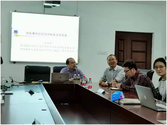 讲座由谭波教授主持,戚红梅、姜漪老师和宪法学与行政法学硕士、博士参加本次讲座。林教授从《突发事件应对法》的发展演变谈起,向同学们详细介绍了《突发事件应对法》立法过程、应急管理体制的构建、应急预案的完善以及信息、决策和预警系统如何建立等问题。林教授谈到应急物资储备时提出目前还需要认真梳理相关规定,并提出完善征用制度和协议储备制度以及增加征购制度等建议。