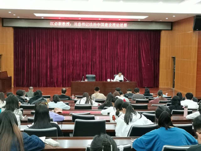 在讲座中,江必新教授从基本背景、主要内容和意义价值等三大方面为我们开怀畅谈了习近平总书记法治中国建设理论。首先,“依法治国”“建设社会主义法治国家”“法治中国建设”“全面依法治国”等理论命题的提出及其实践展开构成了法治中国建设的基本背景,正确理解它们之间的关系是深刻认识习近平法治思想的关键。其次,对为什么要建设法治中国、建设什么样的法治中国及怎样建设法治中国三个问题的回答,是习近平总书记法治中国建设理论的核心要义和主要内容。第一,法治的制度优势、维护国家长治久安、实现战略目标等因素考量构成了建设法治中国的缘由和动力。第二,坚持党的全面领导、坚持人民主体地位、坚持走符合中国国情的法治道路、坚持依宪治国和依宪执政、坚持依法治国和以德治国相结合等方面构成了法治中国的基本图景与样貌。第三,建设法治中国,要以建设中国特色社会主义法治体系为总抓手,以习近平新时代中国特色社会主义思想、中国特色社会主义法治理论、社会主义核心价值观为指导思想,以共同推进、一体建设、统筹治理为推进方略,以“科学立法、严格执法、公正司法、全民守法”为重点任务,以建设高素质的法治队伍和抓住关键少数为关键保障,以正确处理若干重大关系矫正航向,以健全党领导依法治国的制度和工作机制为基本保证。最后,习近平总书记法治中国建设理论发展了马克思主义的法学理论,丰富了世界法治理论,推进了法治国家建设的实践,对巩固党的执政地位、保证国家长治久安具有重大的理论意义和实践价值。