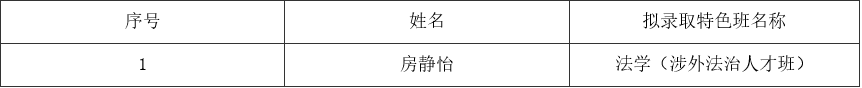 2022级房静怡同学在2022级法学(涉外法治人才班)拟录取名单公示期间提出异议。经公司教学指导委员会讨论,认可房静怡同学提出的异议理由,同意将其列入拟录取名单。现将拟录取名单公示如下。如对以上公示有异议,请于2023年4月21日17:30前通过书面材料反映,反映情况和问题必须实事求是,有事实依据,应签署真实姓名和联系方式,以便调查核实反映的问题。
