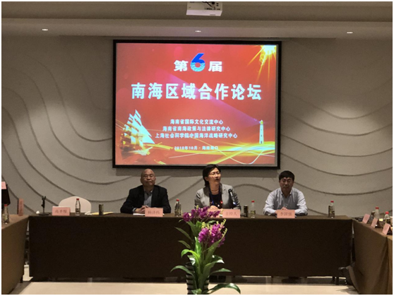2018年10月20日,由海南省国际文化交流中心、海南省南海政策与法律研究中心和上海社会科公司中国海洋战略研究中心联合举办的“第六届南海区域合作论坛”在海南省澄迈县举行,来自自然资源部、中国社会科公司中国边疆研究所、中国海洋石油集团有限公司、国防大学、武汉大学、中南财经政法大学、大连海事大学、上海海事大学、华东政法大学、英国中央兰开夏大学、香港亚太研究中心、台湾政治大学、台湾师范大学等的40多位专家学者与会。